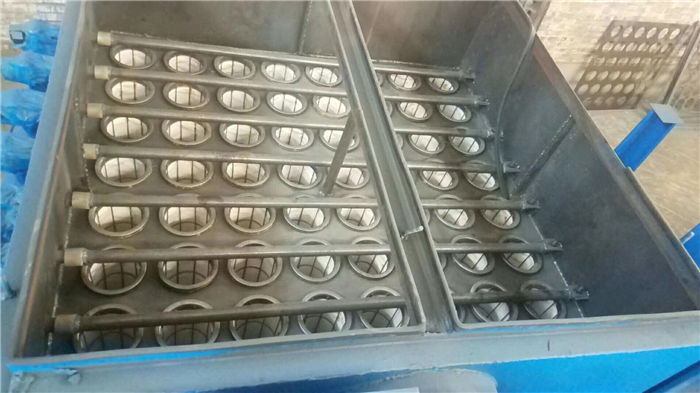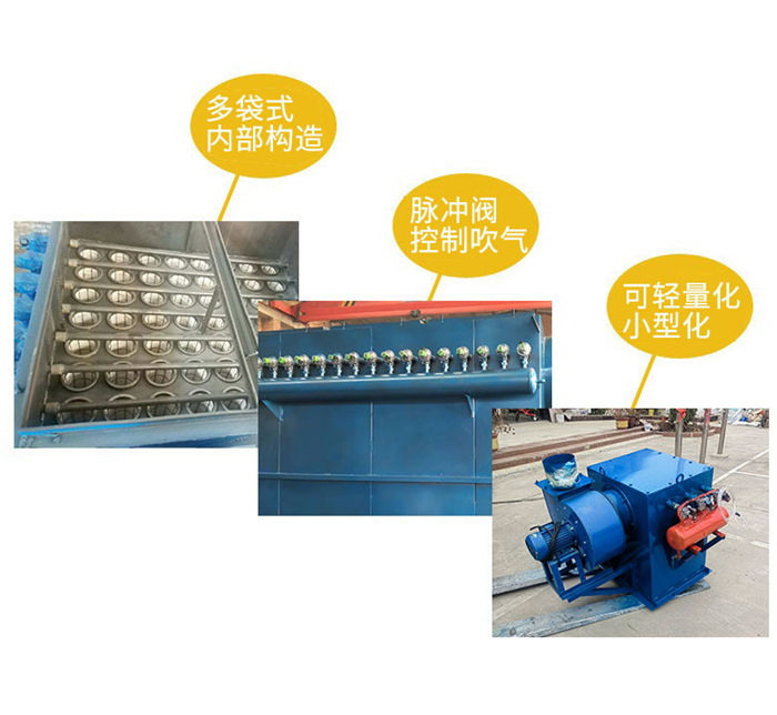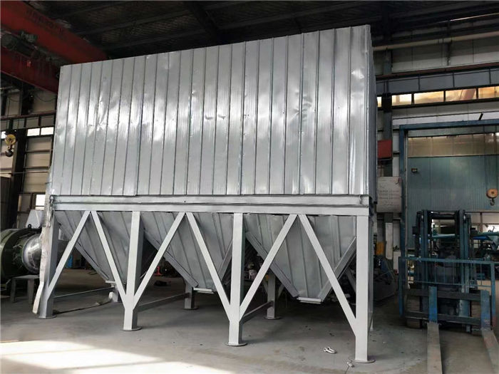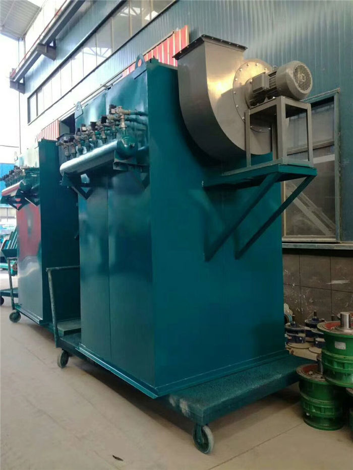 該設(shè)備為多袋式脈沖除塵裝置,當(dāng)含塵氣體由進(jìn)風(fēng)口進(jìn)入除塵器,首先碰到進(jìn)出風(fēng)口中間的斜板及擋板,氣流便轉(zhuǎn)向流入灰斗,同時(shí)氣流速度放慢,由于慣性作用,使氣體中粗顆粒粉塵直接流入灰斗。起預(yù)收塵的作用,進(jìn)入灰斗的氣流隨后折而向上通過(guò)內(nèi)部裝有金屬骨架的濾袋粉塵被捕集在濾袋的外表面,凈化后的氣體進(jìn)入濾袋室上部清潔室,匯集到出風(fēng)口排出,含塵氣體通過(guò)濾袋凈化的過(guò)程中,隨著時(shí)間的增加而積附在濾袋上的粉塵越來(lái)越多,增加濾袋阻力,致使處理風(fēng)量逐漸減少,為正常工作,要控制阻力在一定范圍內(nèi)(140--170毫米水柱),必須對(duì)濾袋進(jìn)行清灰,清灰時(shí)由脈沖控制儀順序觸發(fā)各控制閥開(kāi)啟脈沖閥,氣包內(nèi)的壓縮空氣由噴吹管各孔經(jīng)文氏管?chē)娚涞礁飨鄳?yīng)的濾袋內(nèi),濾袋瞬間急劇膨脹,使積附在濾袋表面的粉塵脫落,濾袋得到再生。清下粉塵落入灰斗,經(jīng)排灰系統(tǒng)排出機(jī)體。由此使積附在濾袋上的粉塵周期地脈沖噴吹清灰,使凈化氣體正常通過(guò),保證除塵系統(tǒng)運(yùn)行。